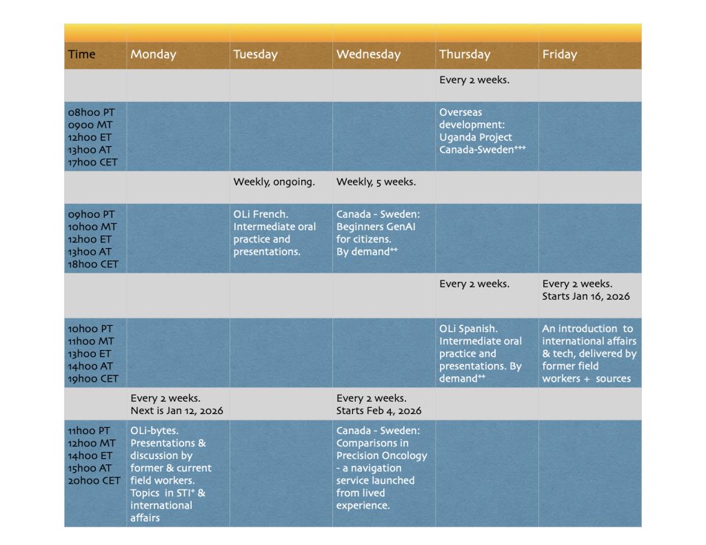 Please contact us to let us know which OLi-workshop series interests you, or your group, or for other questions. We look forward to hearing from you and will provide more details on receipt of our form.